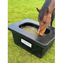 Hard wearing frost resistant plastic and designed for outdoor use to minimise hay wastage and to promote healthy eating.